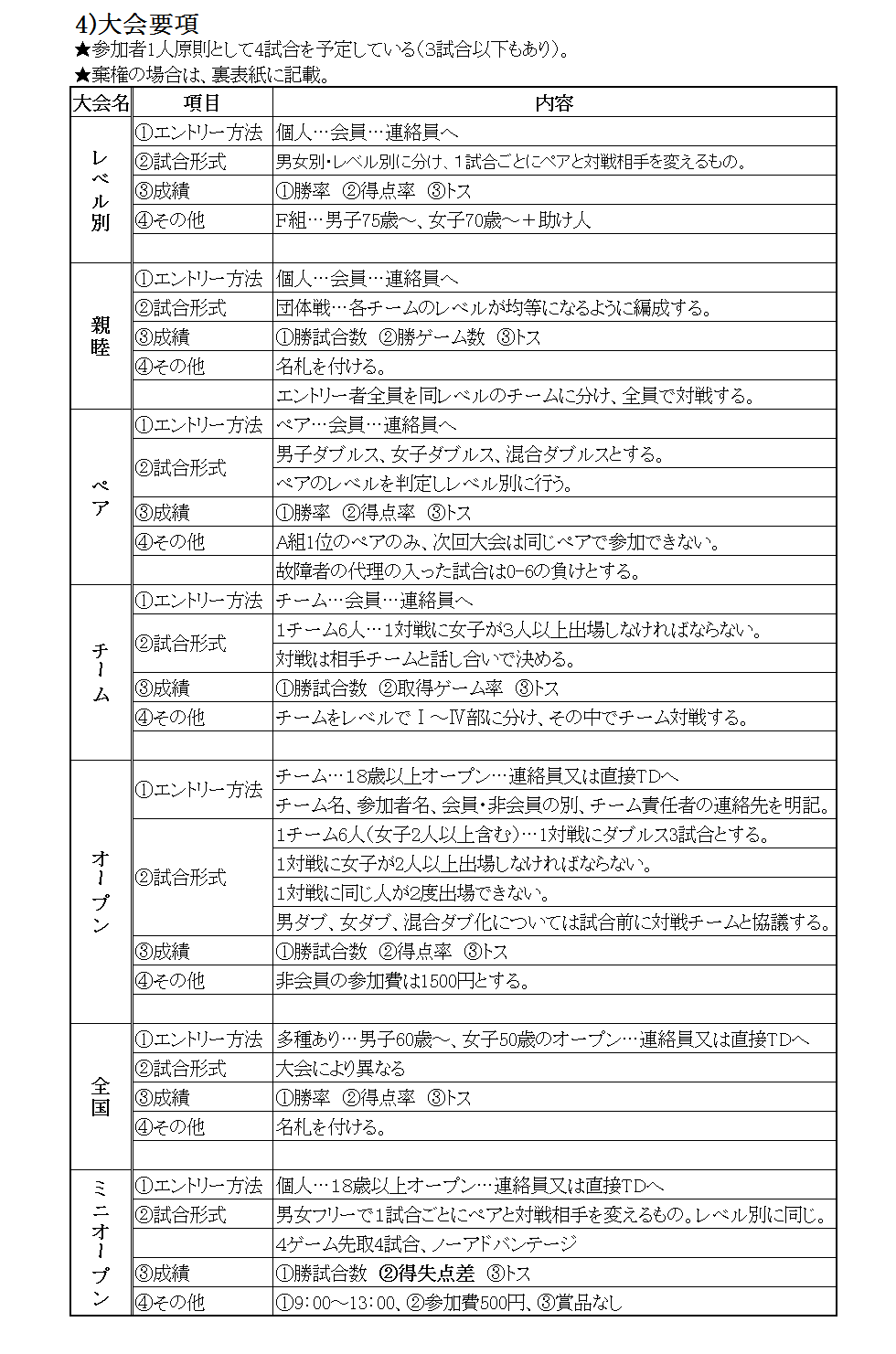 石川エンジョイテニス連盟の概要、試合方法、ルール、役員は下記の通りです。