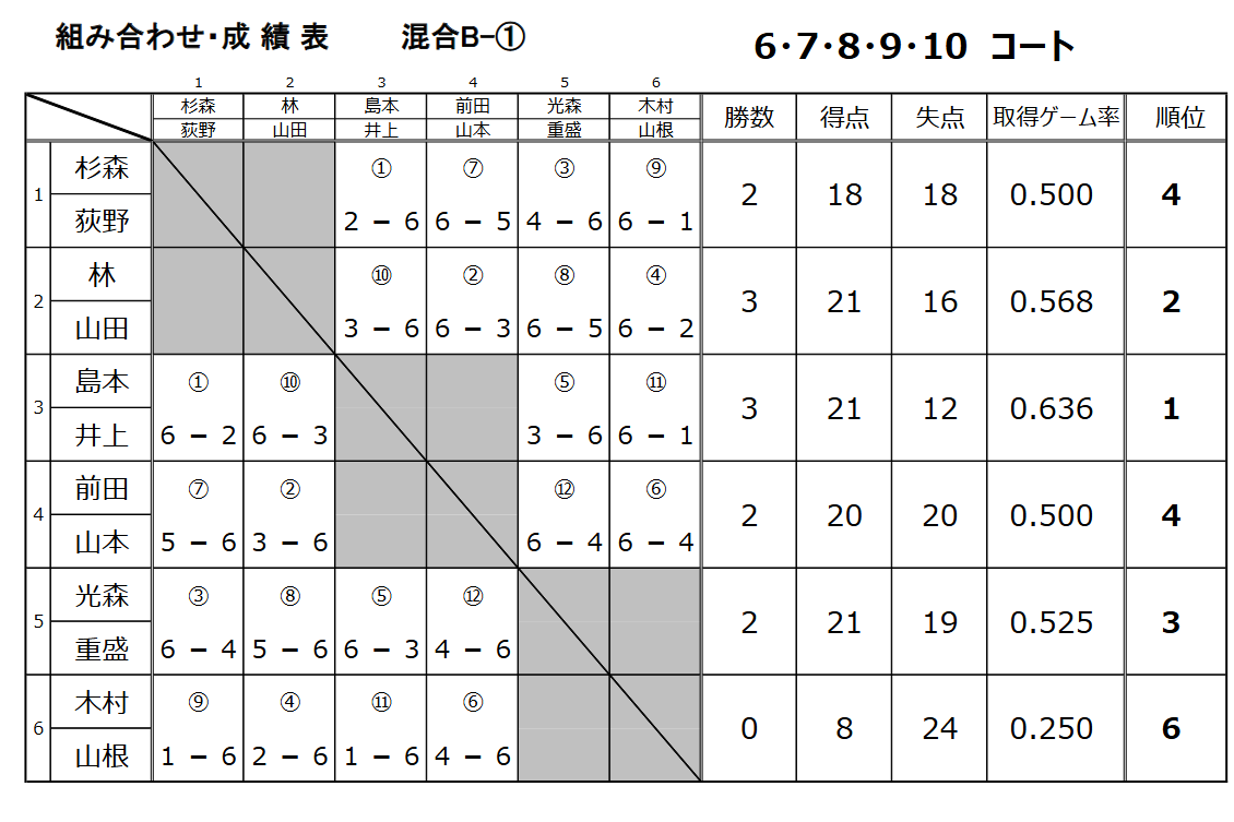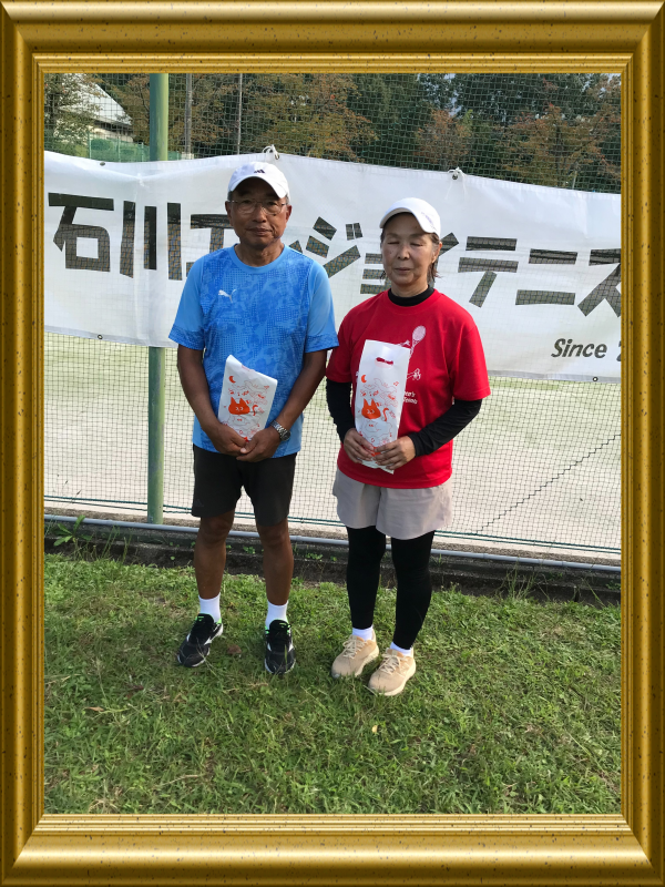 ![]() 混合ダブルスB1グループ優勝 島本 徹・井上美佐江ペア |