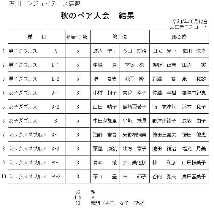 ![]() 男子ダブルスB1グループ準優勝 押野正憲・田辺 実ペア |